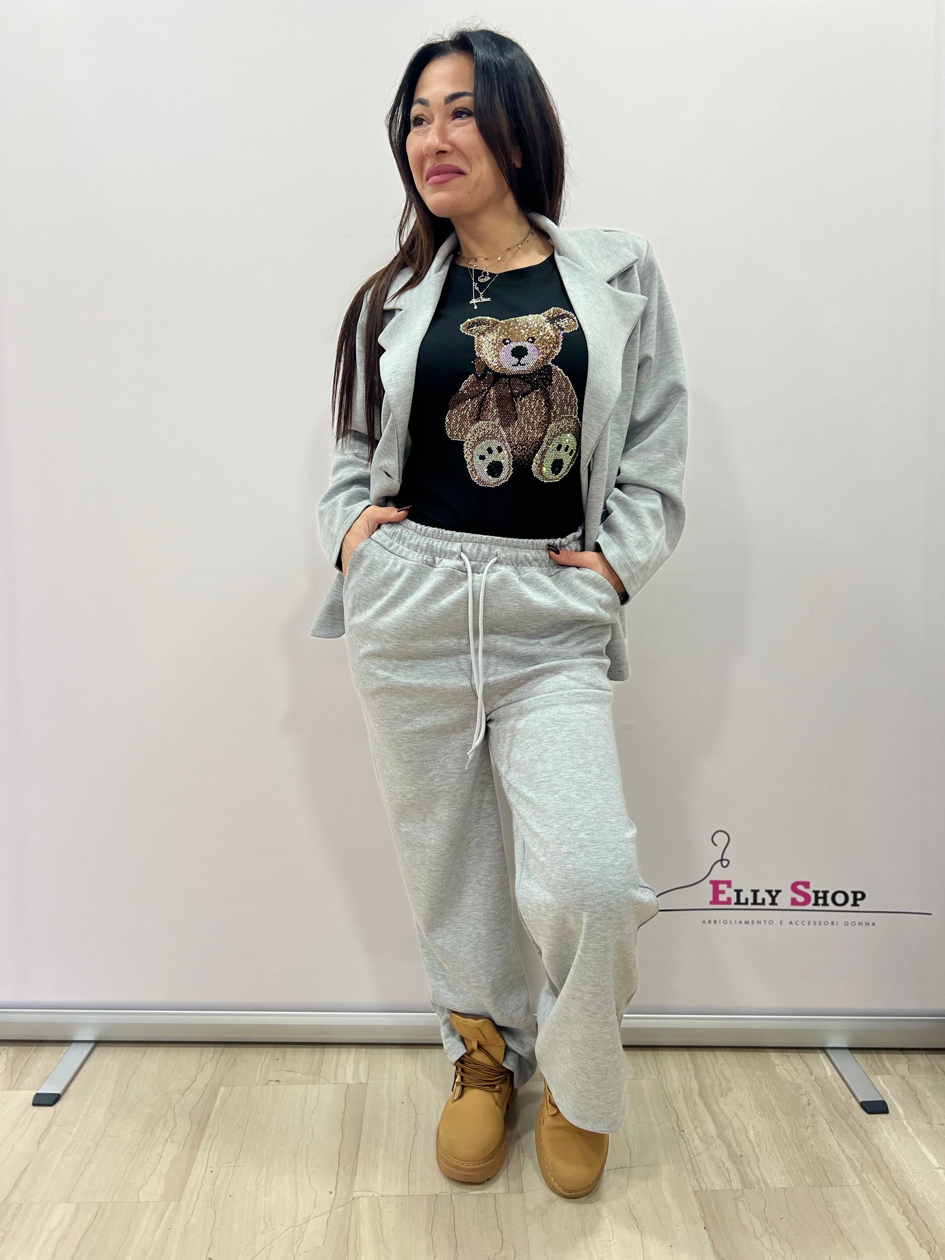 Completo donna dallo stile contemporaneo e versatile, composto da blazer doppiopetto e pantalone coordinato. Il design unisce eleganza e comfort, rendendolo perfetto sia per look casual chic quotidiani che per occasioni più curate, come ufficio, tempo libero o uscite serali informali. La vestibilità è morbida e confortevole, valorizza la silhouette senza costringere ed è ideale per chi ama un look rilassato ma ricercato. Disponibile in diverse tonalità di tendenza, facilmente abbinabili.