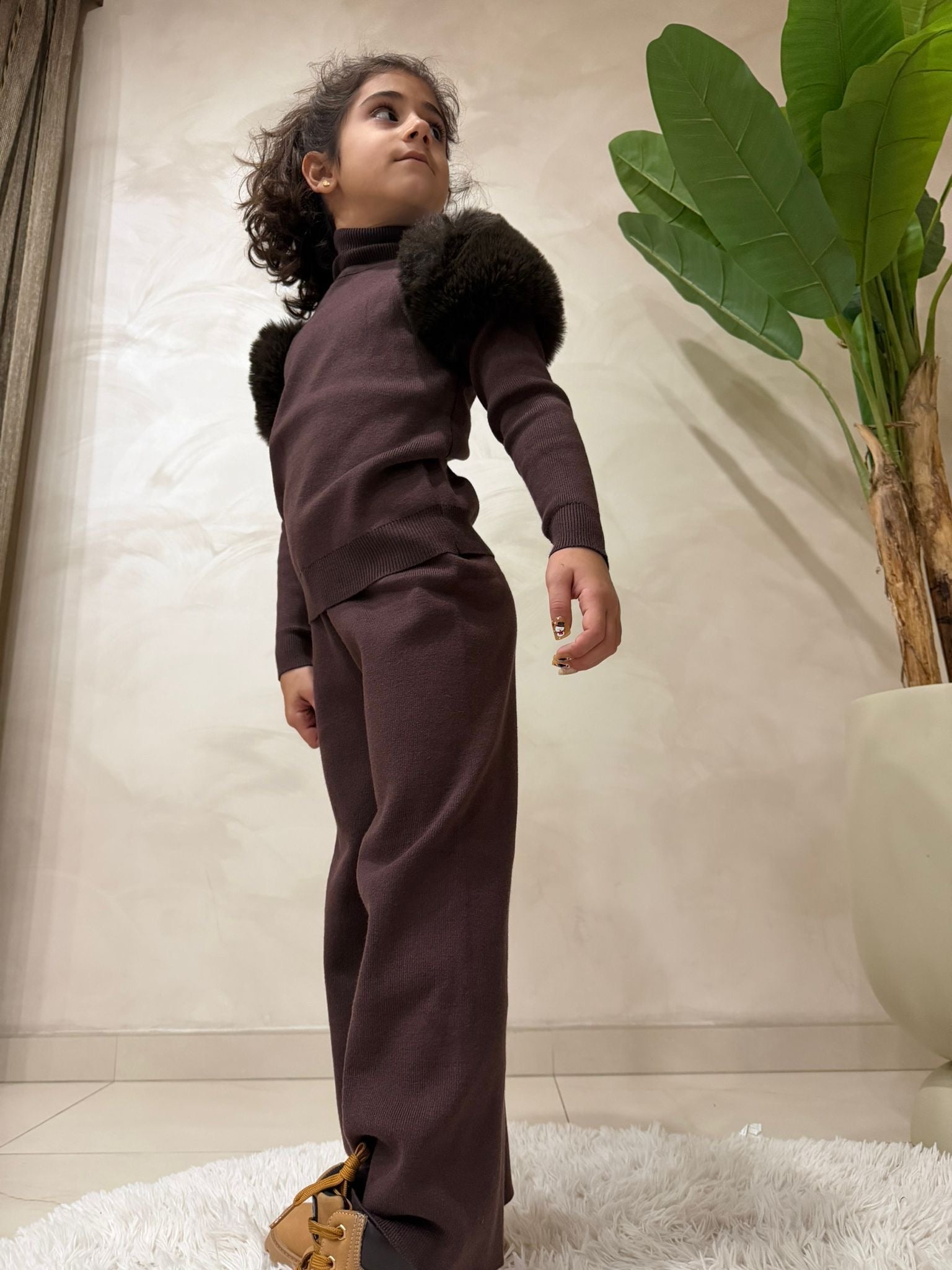 Completo raffinato e moderno, perfetto per occasioni speciali e look ricercati. Il design minimal è impreziosito dalle spalline in eco-pelliccia che aggiungono un tocco scenografico e originale. La vestibilità regolare garantisce comfort e libertà di movimento, mentre il colore marrone dona un’eleganza senza tempo, ideale per cerimonie, feste o uscite più formali.
