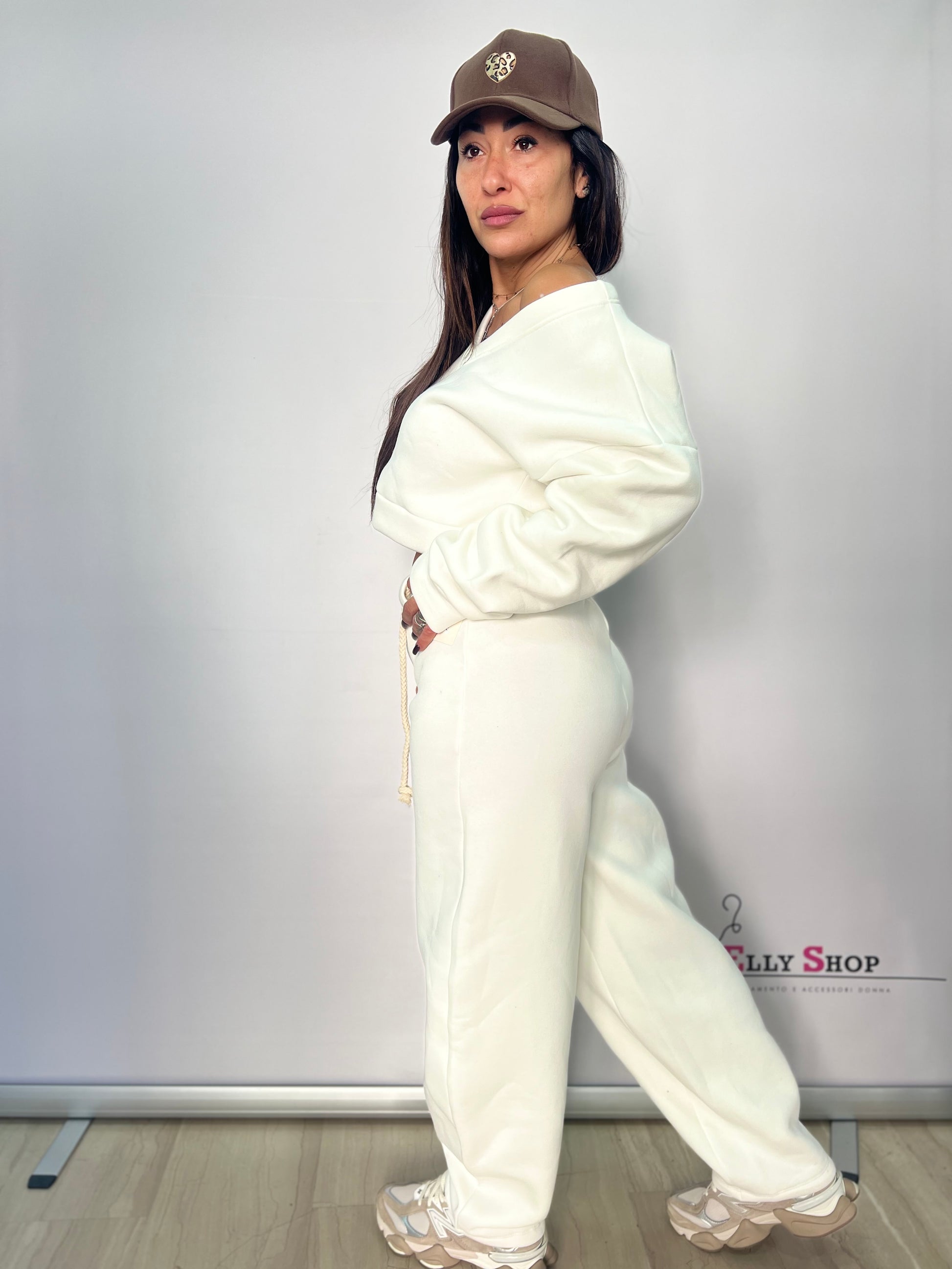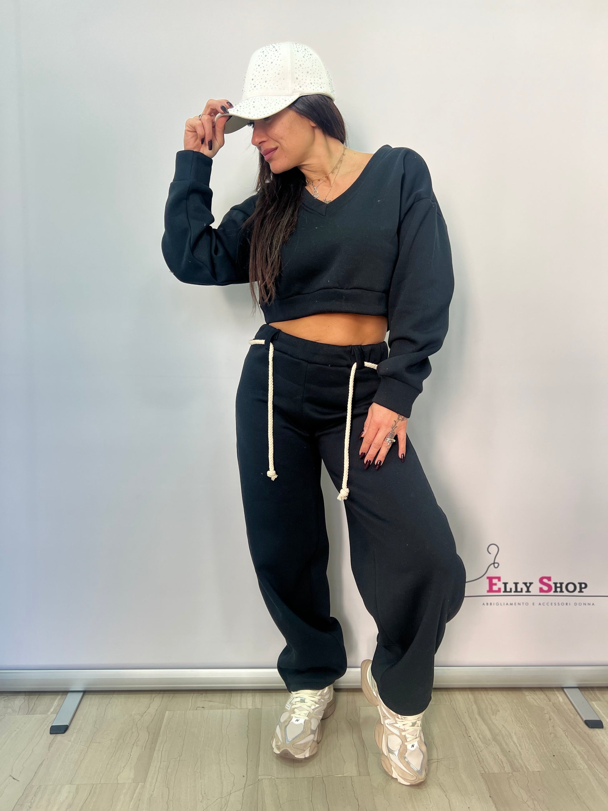 Completo due pezzi dal carattere casual e contemporaneo, ideale per chi ama uno stile sporty-chic senza rinunciare al comfort. La felpa crop con scollo a V valorizza la silhouette, mentre il pantalone jogging a vita elasticizzata garantisce una vestibilità comoda e rilassata. Perfetto per il tempo libero, look urban, viaggi o outfit quotidiani dal gusto moderno. Disponibile in diverse varianti colore per adattarsi a ogni stile.