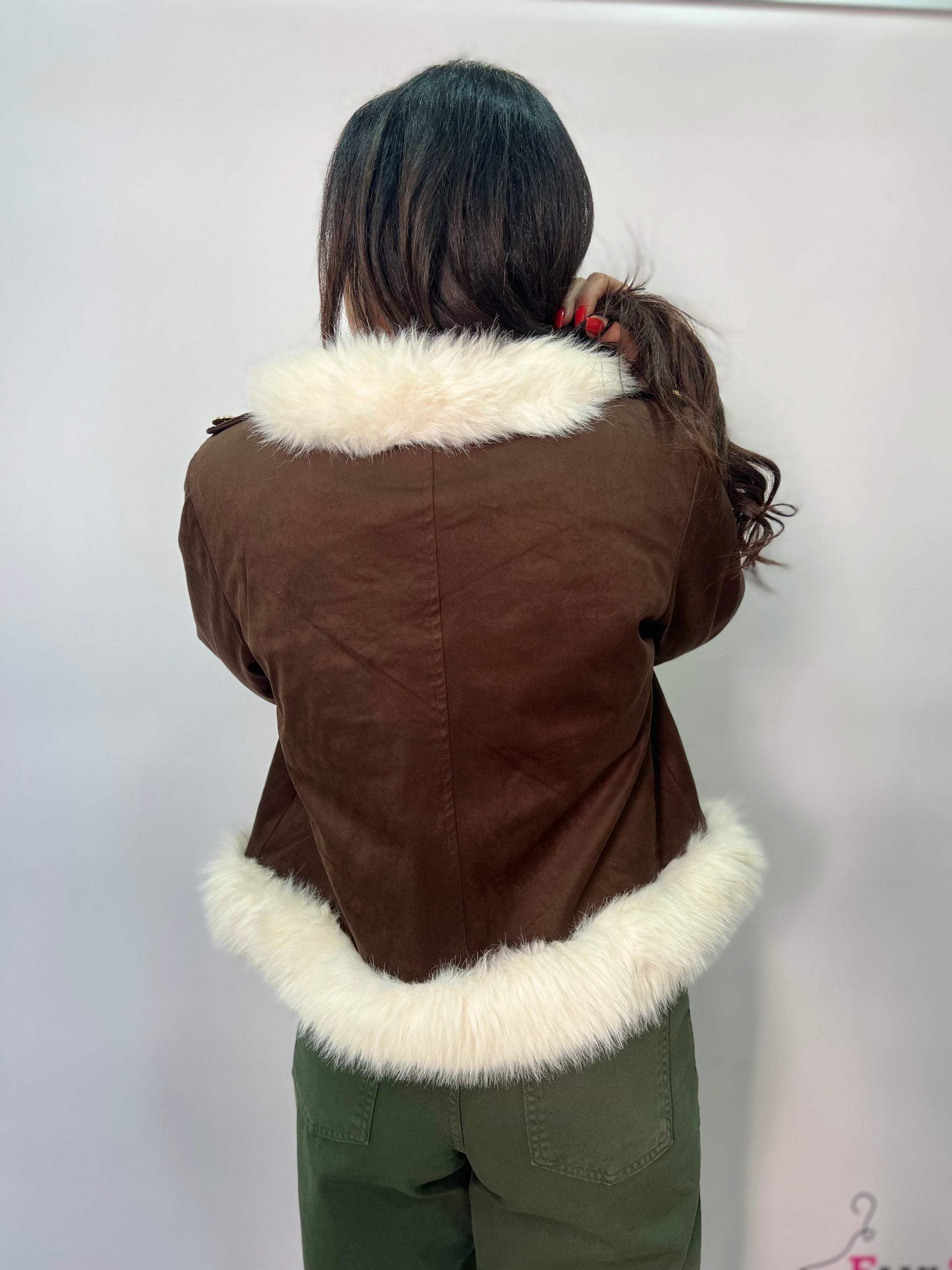Giacca corta con profili in eco pelliccia