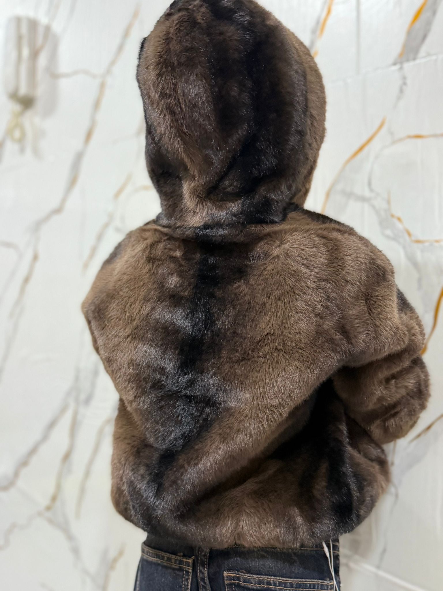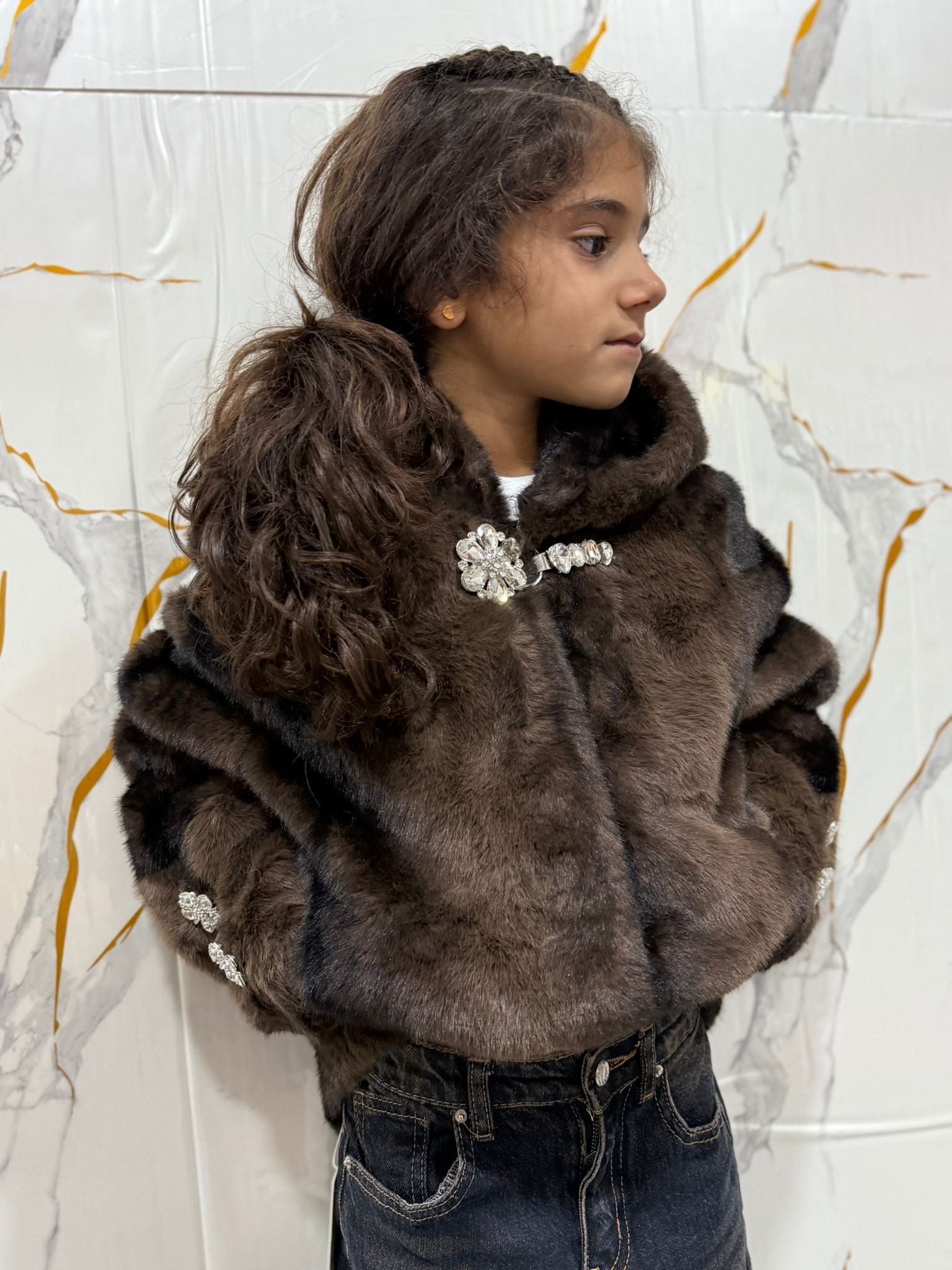 Pelliccia bambina elegante marrone con strass — giacca cerimonia inverno