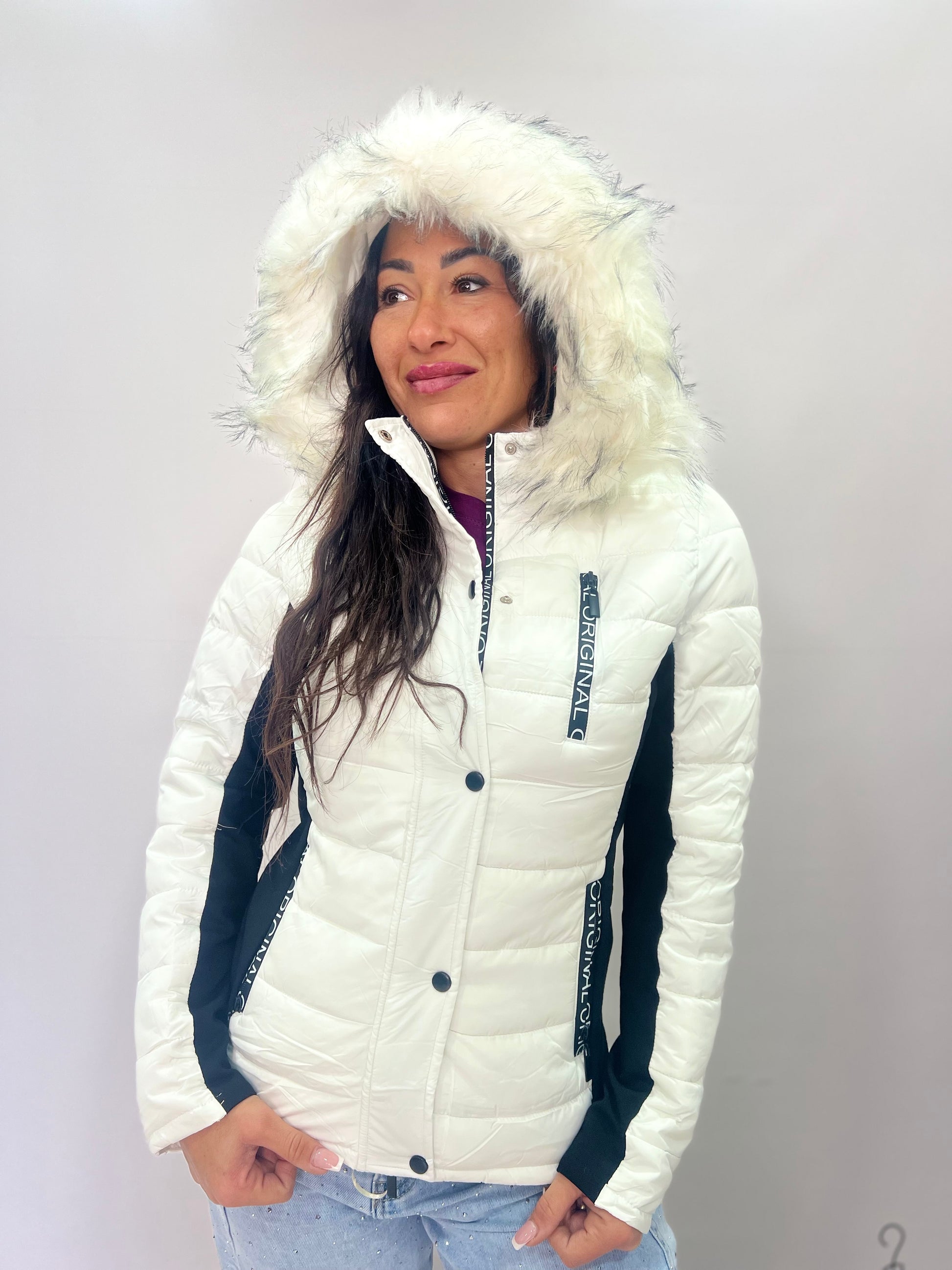 Questo piumino da donna unisce stile sportivo e design femminile, grazie alla linea leggermente sagomata e agli inserti laterali a contrasto che valorizzano la silhouette. Dotato di cappuccio con bordo in ecopelliccia removibile, offre calore e comfort nelle giornate fredde. Ideale per l’uso quotidiano, per il tempo libero e per un look dinamico e moderno. Disponibile in diversi colori vivaci e classici per adattarsi a ogni stile personale.