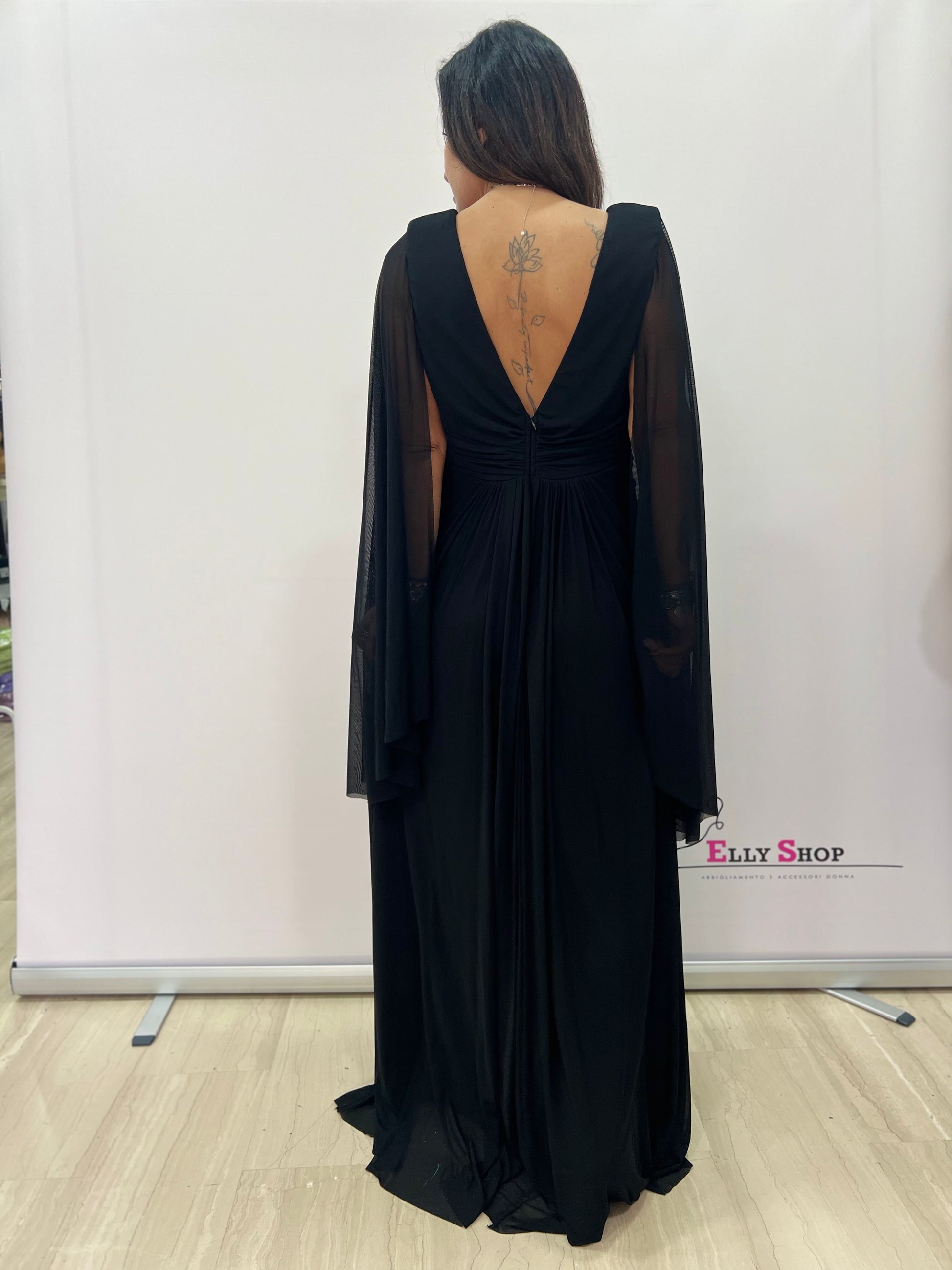 Abito Lungo Elegante con Maniche a Mantella