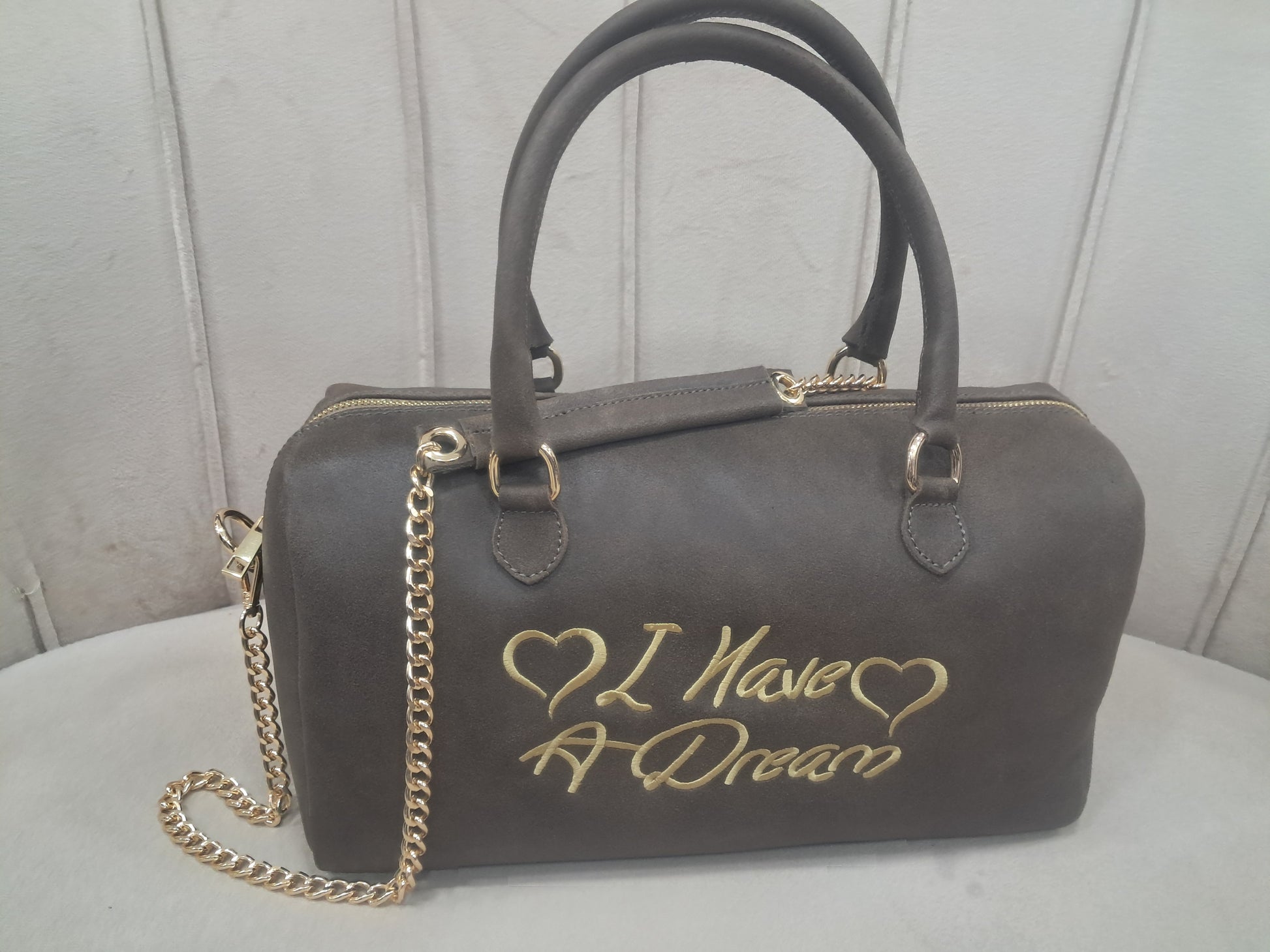 "Porta un tocco di eleganza e stile con il nostro bauletto in vera pelle made in Italy. Con la scritta "I have a dream", aggiunge anche un messaggio positivo al tuo look. Spazioso, resistente e di alta qualità, è la scelta perfetta per portare con te tutto ciò di cui hai bisogno."