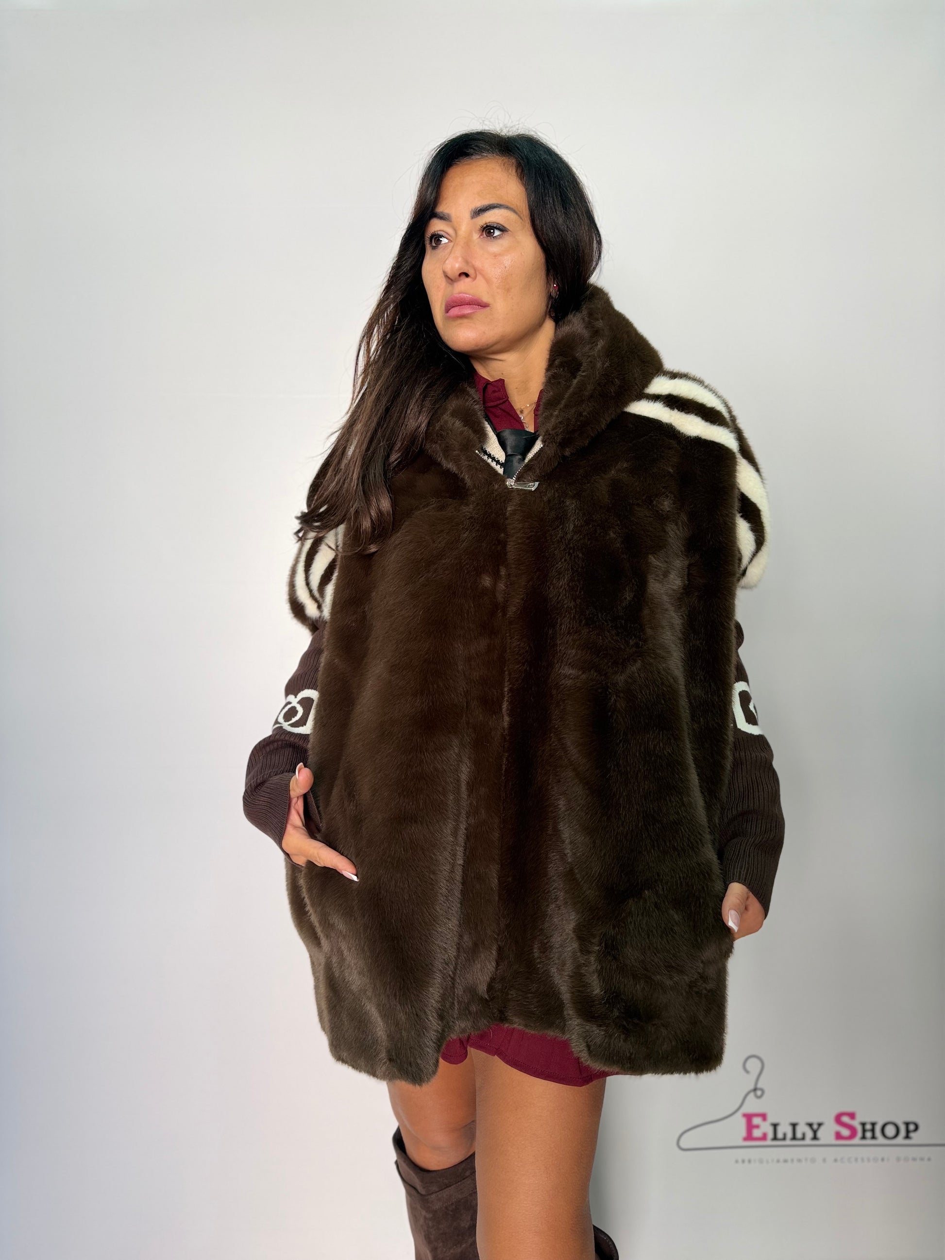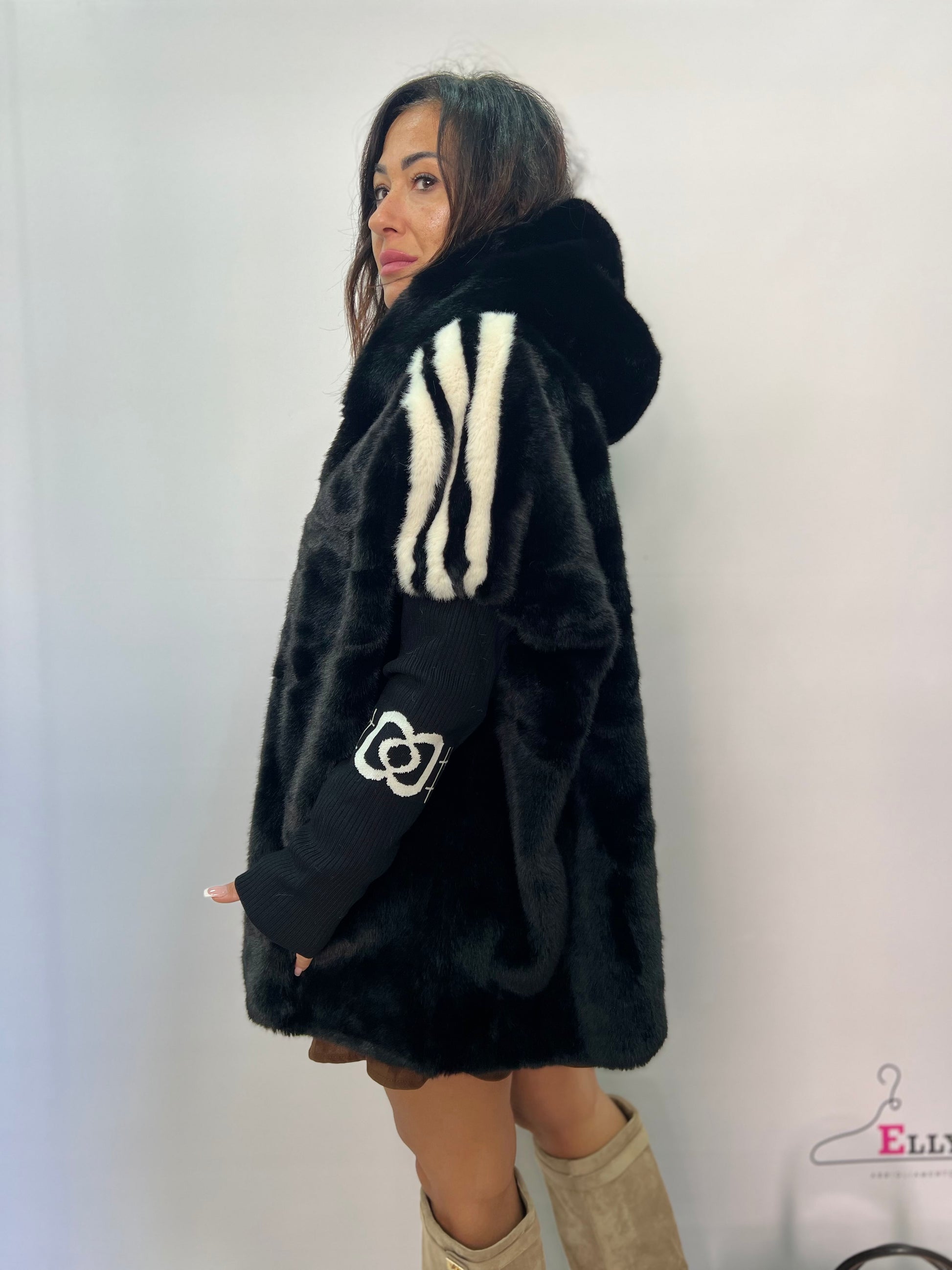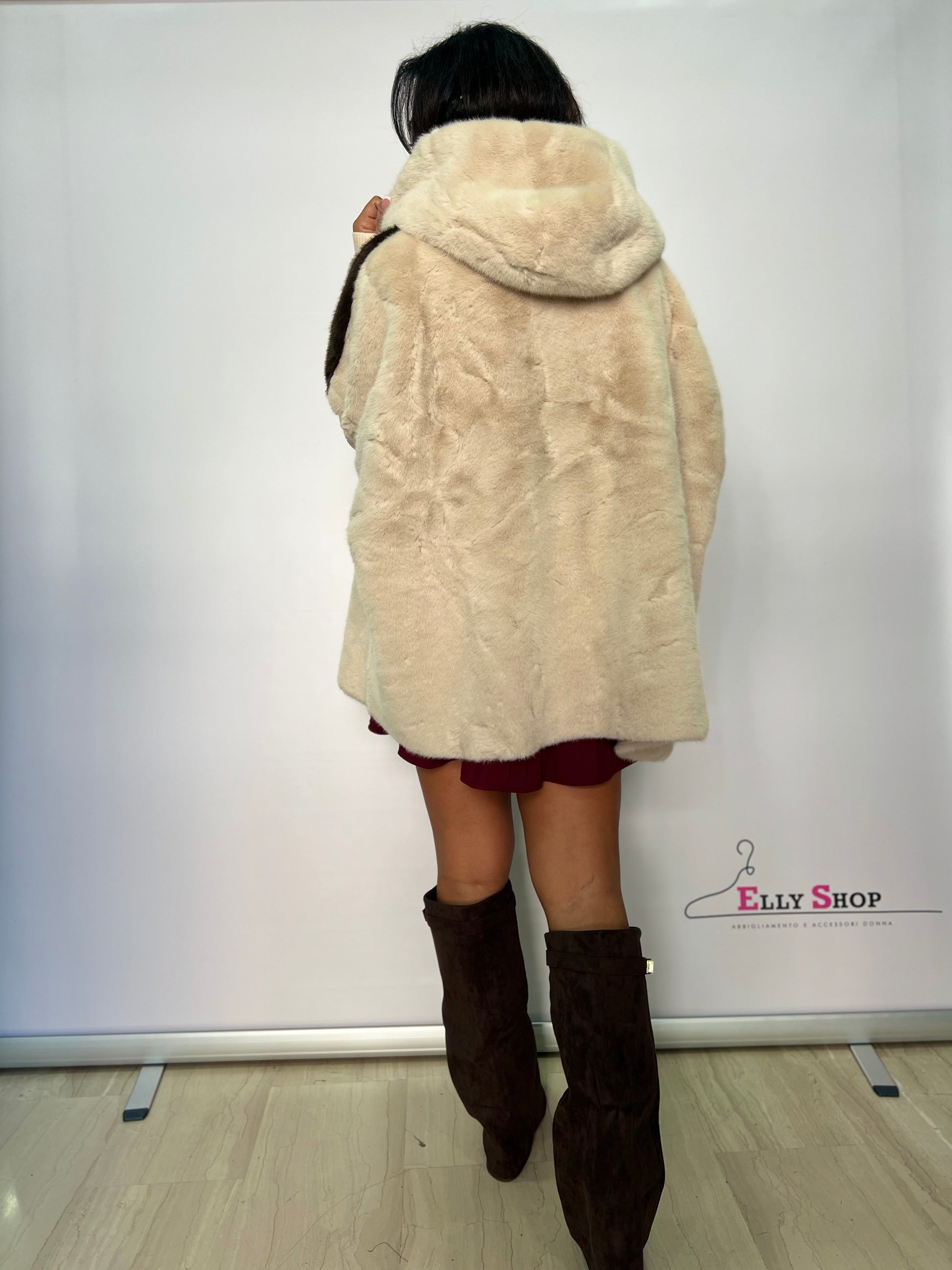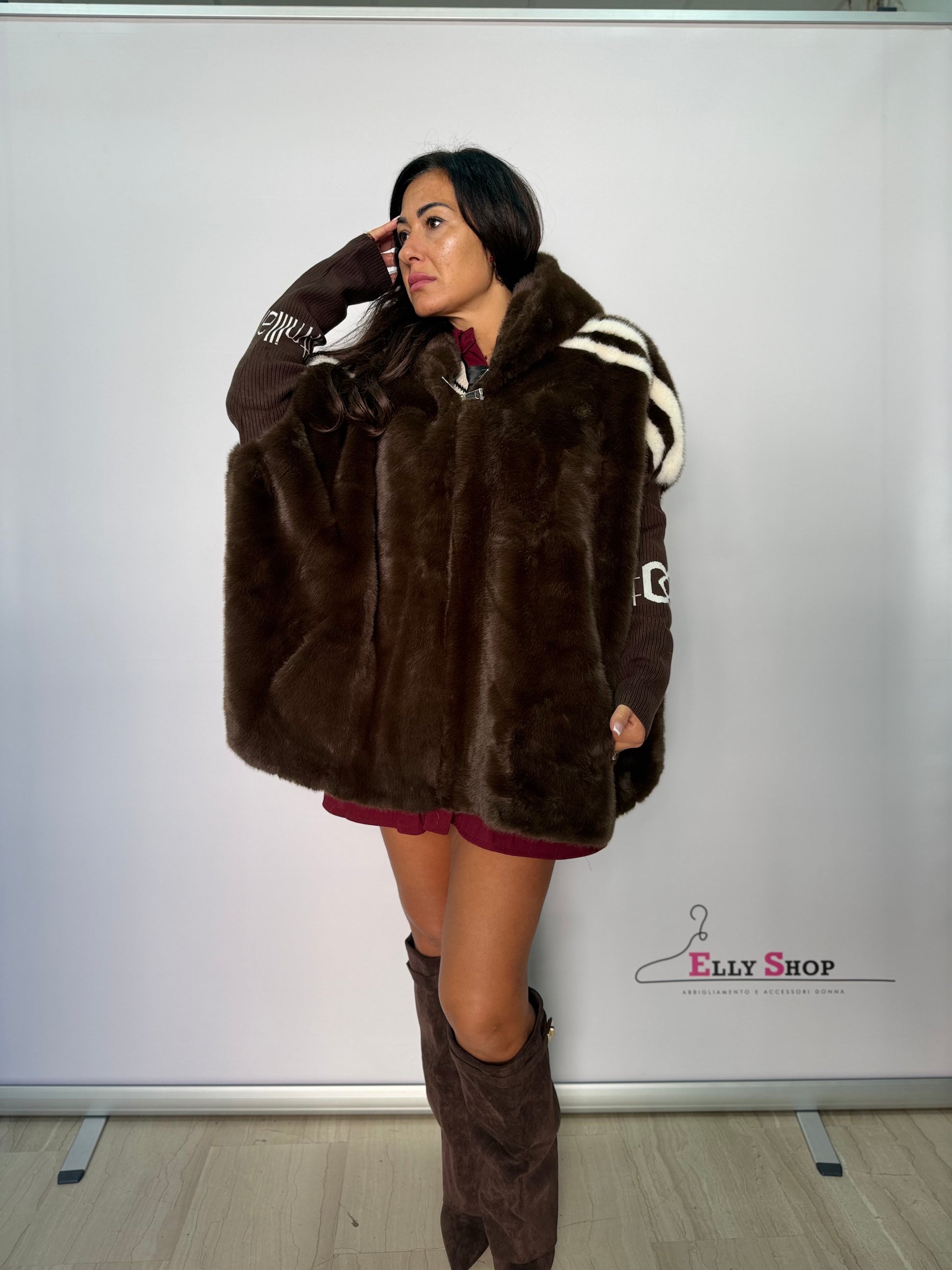 Elegante e avvolgente, questa cappa in eco pelliccia dona un tocco sofisticato e contemporaneo a ogni outfit. Il design ampio con cappuccio la rende ideale per le giornate fredde, garantendo comfort e stile. Il mix di tonalità marrone, nero e beige la rende facile da abbinare sia a look casual che a mise più raffinate. Perfetta da indossare sopra abiti, jeans o pantaloni slim, per un risultato chic e senza tempo.