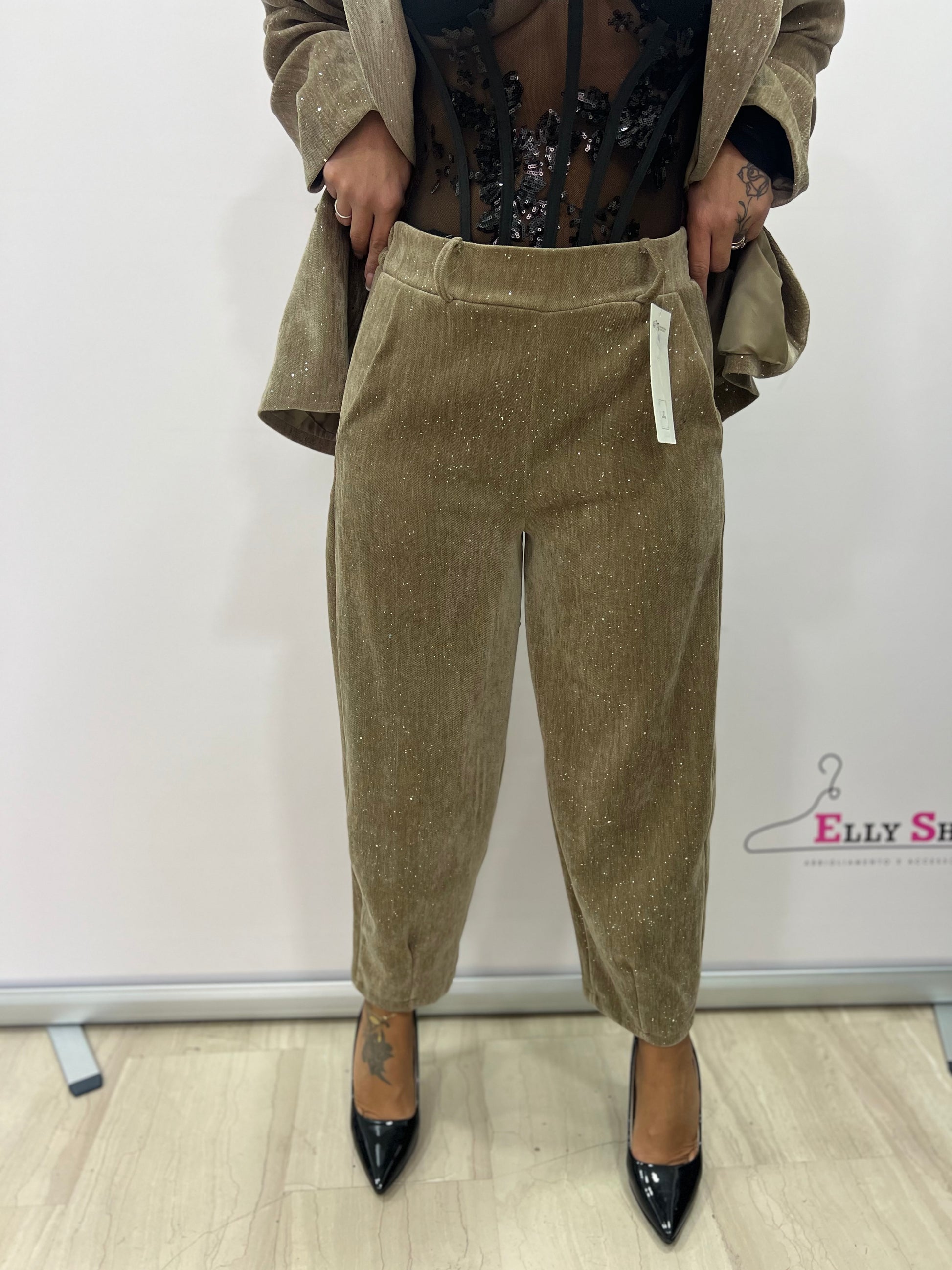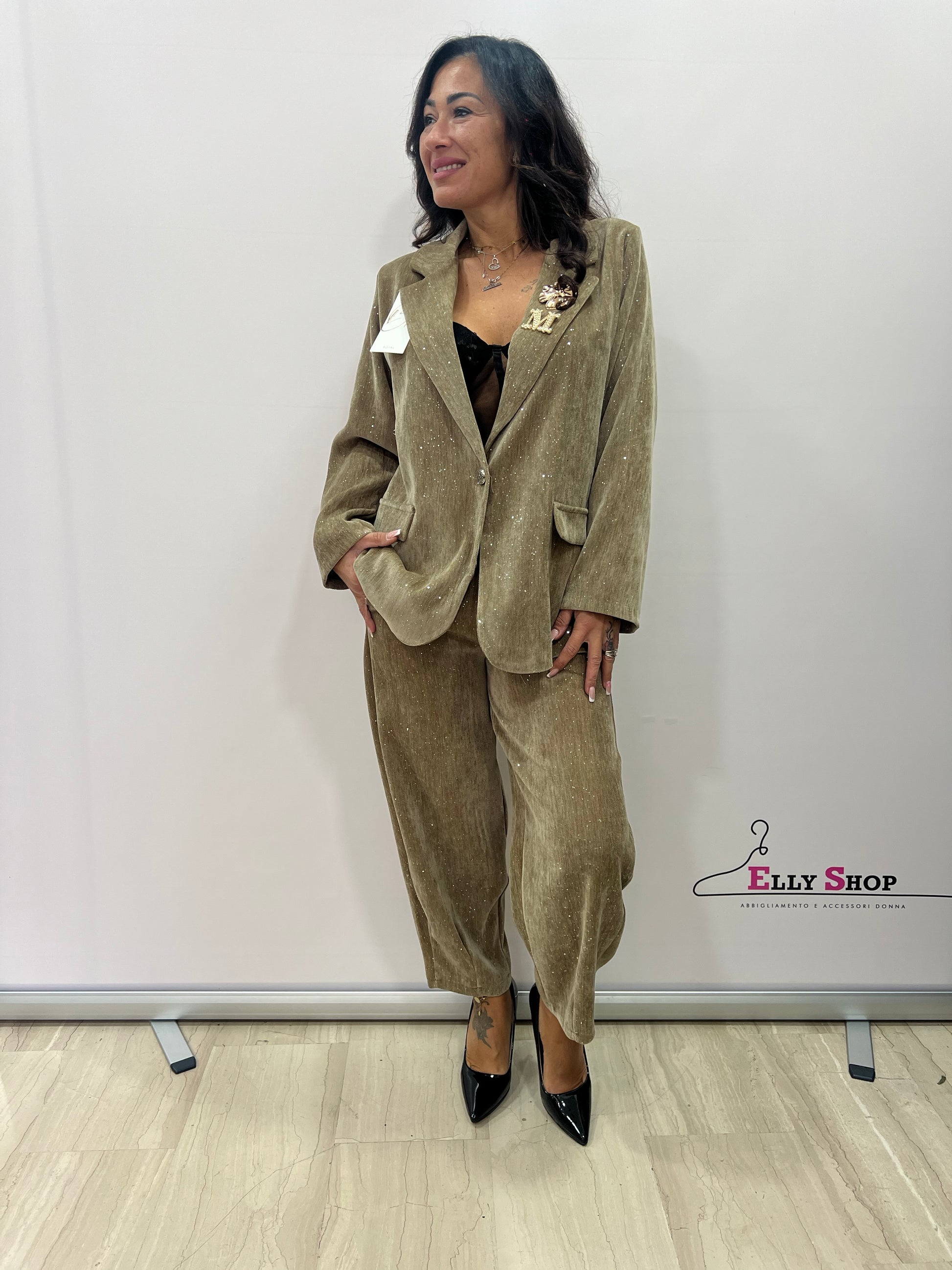 Questo elegante completo da donna unisce stile contemporaneo e raffinatezza grazie al suo effetto luminoso discreto ma d’impatto. La giacca dal taglio classico e il pantalone morbido creano una silhouette sofisticata, ideale per eventi serali, cene eleganti o look formali ricercati. Disponibile in tre varianti colore — nero, marrone cioccolato e beige dorato — si adatta facilmente a diversi stili e abbinamenti. La vestibilità comoda e fluida lo rende perfetto per chi desidera un capo chic ma confortevole.
