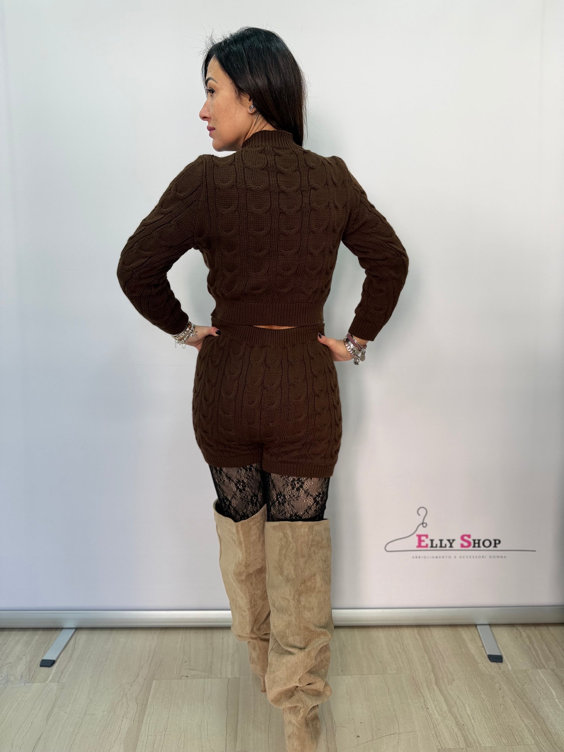 Completo maglia e shorts in maglia a trecce