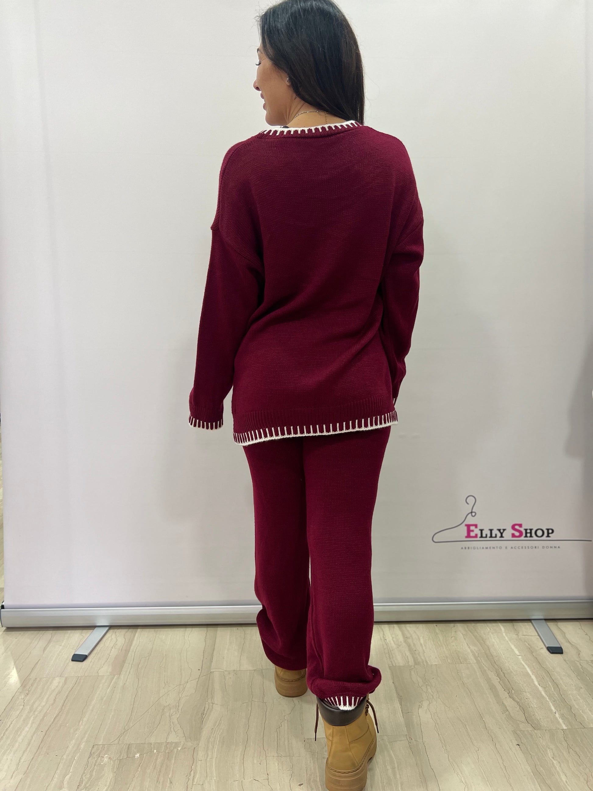 Dettaglio: Maglia con profili a contrasto su scollo, polsini e fondo, pantalone coordinato a gamba morbida