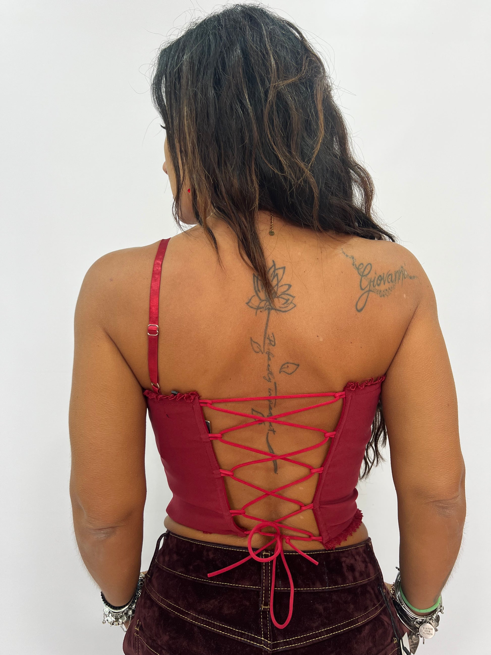 Romantico e sensuale, questo corpetto bordeaux con applicazioni floreali in rilievo è il capo perfetto per valorizzare la femminilità con eleganza. Il design strutturato con coppe modellanti e spalline sottili esalta la silhouette, mentre i dettagli floreali nelle tonalità del rosso e del nero aggiungono un tocco sofisticato e raffinato. Ideale per serate speciali o per completare look da cerimonia con un’eleganza unica.