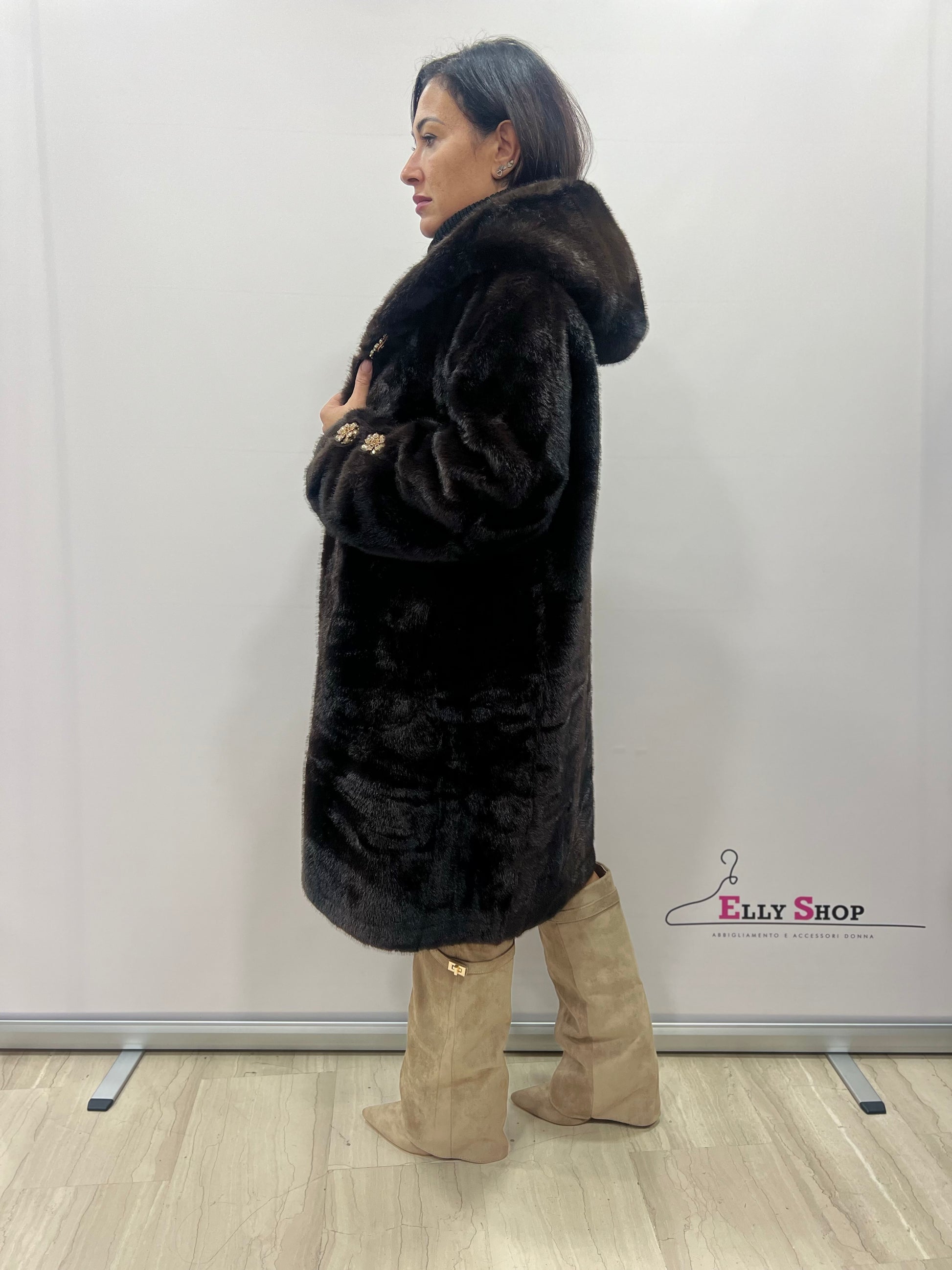 Tipo: Cappotto lungo in ecopelliccia con cappuccio
