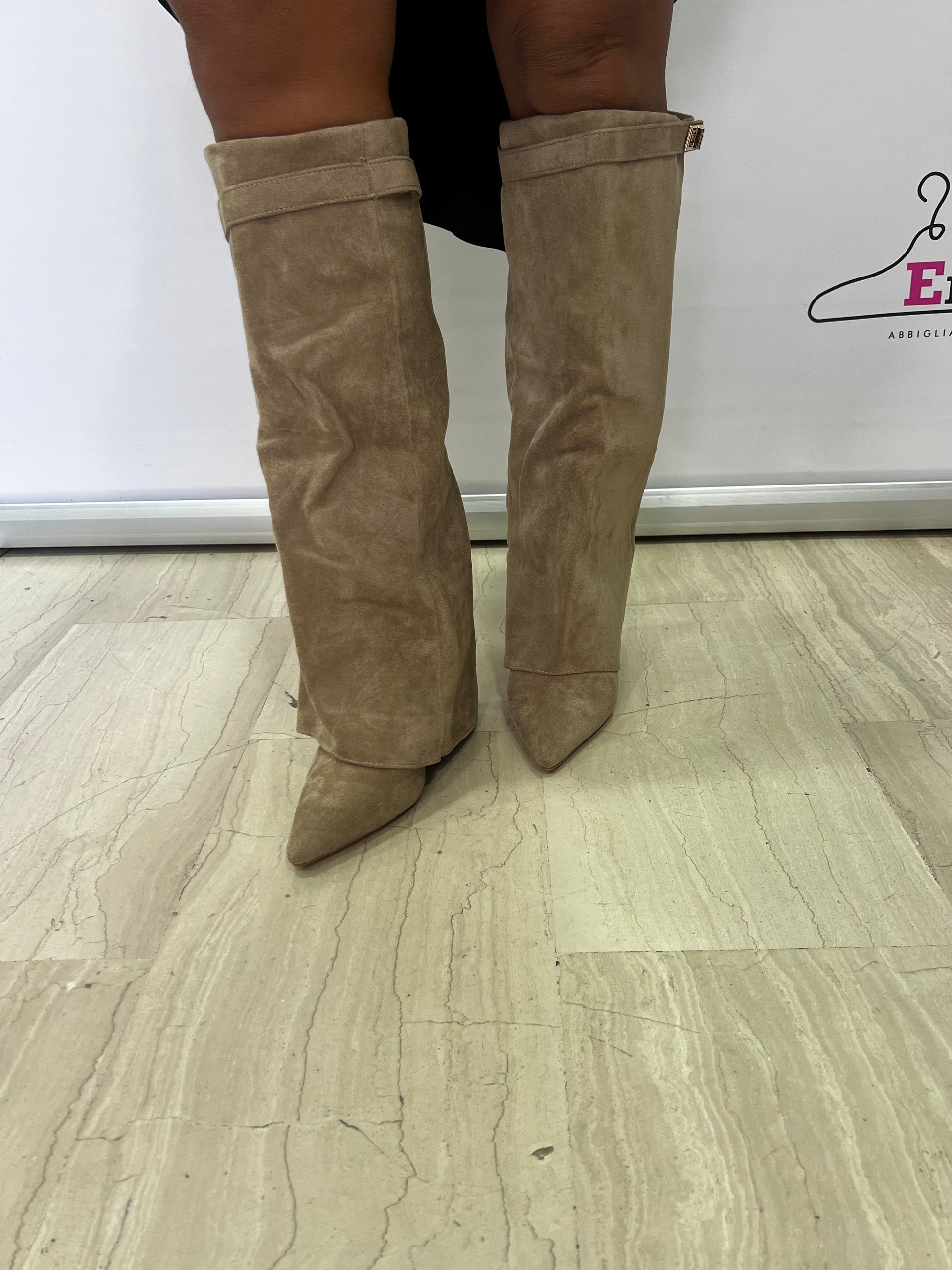 Questi eleganti stivali alti in tonalità beige si distinguono per il loro design raffinato e contemporaneo. Realizzati in morbido materiale effetto scamosciato, offrono una vestibilità comoda e una linea slanciata che valorizza la gamba. Il tacco largo e stabile dona equilibrio e comfort, rendendoli perfetti per essere indossati tutto il giorno. Ideali per completare look autunnali e invernali con gonne, abiti o pantaloni skinny. Disponibili nei classici colori beige e marrone, rappresentano un must-have per chi ama uno stile sofisticato e versatile.