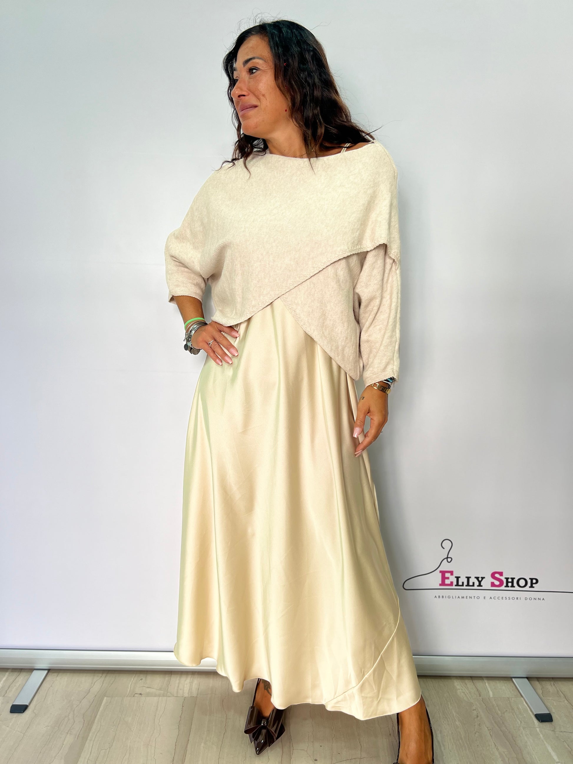 Questo vestito in raso è l'ideale per una serata elegante. Il copri spalla in lana ti terrà al caldo senza sacrificare lo stile. Grazie alle foto, puoi vedere la qualità e il design di questo vestito. Perfetto per chi vuole distinguersi con un look sofisticato e moderno.